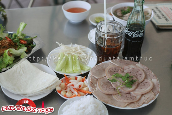 Bánh tráng Trảng Bàng cuốn thịt luộc là món bạn phải nhớ mãi nếu nếm qua một lần. Khi gọi món, bạn sẽ được cả một dĩa thịt to mà đủ loại, thịt đùi, thịt ba rọi… được bày biện đẹp mắt mà miếng nào miếng nấy to đùng đùng xếp vung cả dĩa. Nhưng không thể nào thiếu các nguyên liệu đi kèm như chuối chát, khế chua rau sống, bún tươi… Các nguyên liệu nhiều đến nỗi cuốn nào cuốn nấy mập thù lù cắn vào đến ních cả bụng. Mà nếu ăn không như thế sẽ không ngon bằng có chén mắm nêm pha với trái thơm chua chua, ngọt ngọt mà vẫn giữ vị đậm đà, chính thống.