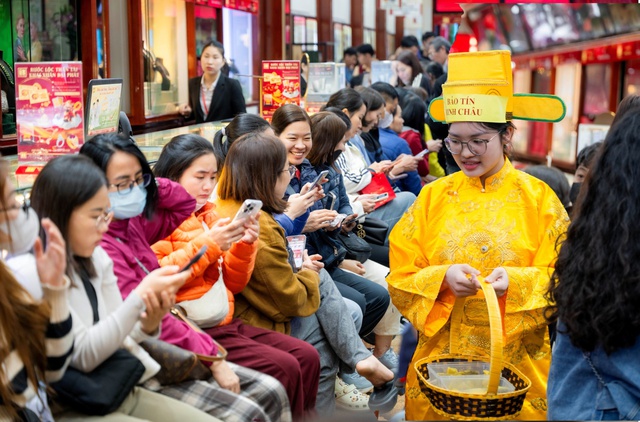 Niềm vui hiện rõ trên gương mặt người mua khi cầm sản phẩm vàng trên tay với mong muốn một năm hanh thông, tài lộc.