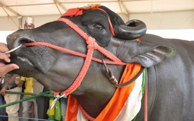 Siêu trâu nặng 1,5 tấn đến từ thành phố Kurukshetra, bang Haryana, miền bắc Ấn Độ mới đây nhất đã trở thành ngôi sao trong Lễ hội nghề cá và sữa Bhubaneswar tổ chức hồi cuối tháng 2/2024 ở Bhubaneswar, bang Odisha.