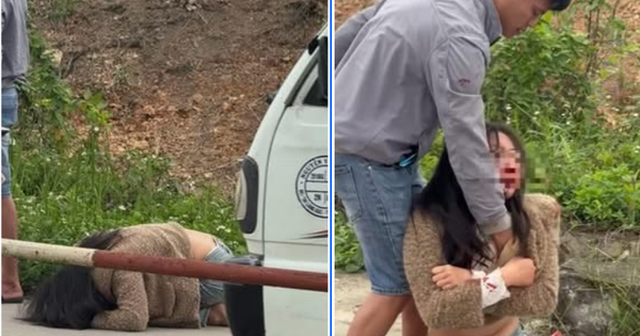Tuy nhiên, cô gái không đứng dậy, người đàn ông này đã nắm áo cô gái rồi kéo lê cô trên đường mặc cho cô gái gào khóc.