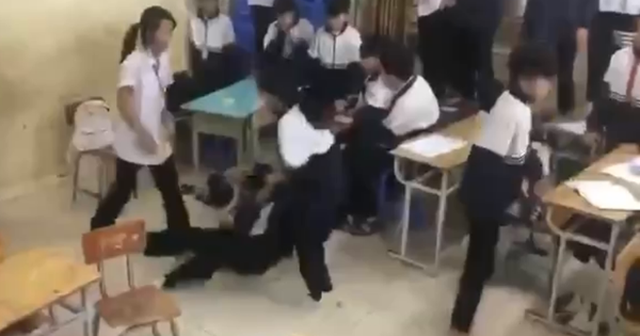 Trước đó, như Báo Người Lao Động đã đưa tin, vừa qua, trên mạng xã hội lan truyền 2 đoạn clip ghi lại cảnh 1 nữ sinh bị nhiều nữ sinh khác đánh "hội đồng" ngay trong lớp học trước sự chứng kiến của các bạn trong lớp.