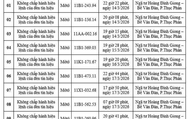 Ngày 20/3, Cổng thông tin điện tử Công an tỉnh Cao Bằng đã đăng tải thông báo kết quả phát hiện các trường hợp vi phạm giao thông qua Hệ thống camera giám sát giao thông. Danh sách bao gồm 14 trường hợp người điều khiển xe mô tô và xe ô tô vi phạm từ ngày 12/3 đến ngày 18/3.