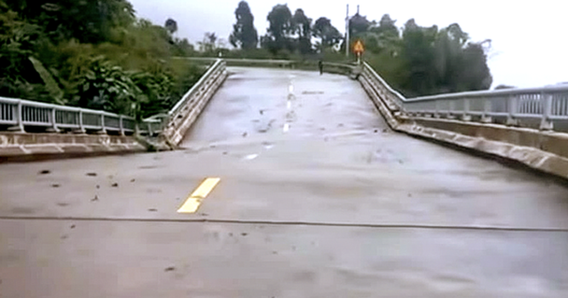 Cầu Cạn tại Km396+050 trên tuyến đường Hồ Chí Minh nhánh Tây, đoạn qua xã A Lưới 4, TP Huế đã bị hư hỏng nghiêm trọng