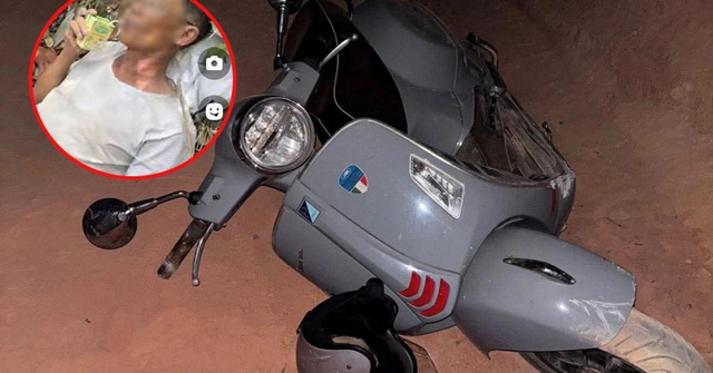 Chiếc xe máy của ông Quang được tìm thấy ở lối mòn khu vực đồi núi ở xã Sa Thầy, tỉnh Quảng Ngãi. (Ảnh: Tuổi Trẻ Online)