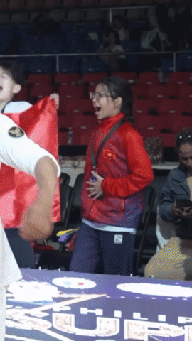 Cụ thể, trong một đoạn clip được lan truyền, bé Kubi (tên thật Nguyễn Minh Cường) - con trai của bộ đôi kiện tướng dancesport Khánh Thi và Phan Hiển - không giấu nổi sự phấn khích khi chứng kiến bố mình thi đấu thành công. Cậu bé liên tục reo hò, nhún nhảy và ăn mừng cực sung, biểu cảm hạnh phúc hiện rõ trên gương mặt. Khoảnh khắc này nhanh chóng “đốn tim” người xem bởi sự hồn nhiên và tình cảm gia đình đầy ấm áp. Bên cạnh Kubi là bạn nhảy Linh San (tên tiếng Anh là May) cũng ăn mừng cực phấn khích.