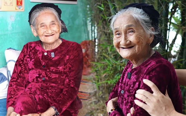 Cụ Xong tái hiện lại cách tạo dáng trong bức ảnh "Nụ cười ẩn giấu".