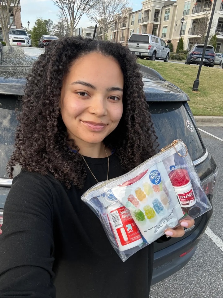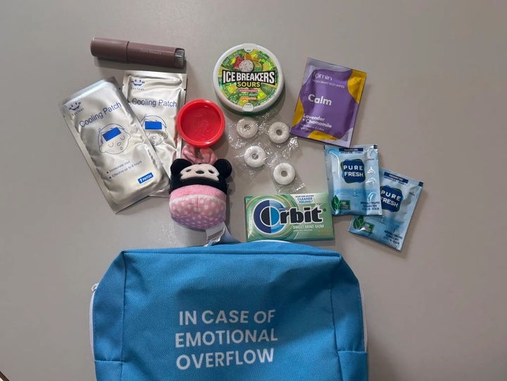 Trong lúc tuyệt vọng, cô nhìn thấy chiếc túi nhỏ mà bản thân và chuyên gia trị liệu cùng chuẩn bị trước đó, một “túi trấn an” lấy cảm hứng từ các video trên mạng xã hội. Bên trong là những vật dụng giúp cô đối phó với lo âu.