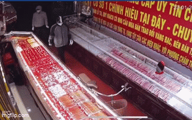 Theo dõi camera an ninh có thể thấy, hành vi của các đối tượng là cực kỳ manh động và có sự phân công rõ ràng. Đối tượng thứ nhất cầm dao sắc nhọn đi một vòng trong tiệm, sẵn sàng đe dọa những người xung quanh. Trong khi đó, đối tượng thứ hai dùng búa đập liên tiếp nhiều nhát làm vỡ vụn tủ kính trưng bày để cướp vàng.