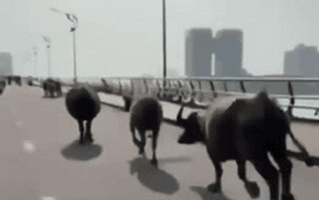 Đàn trâu vô chủ, chạy tung tăng qua cầu Rồng, Đà Nẵng