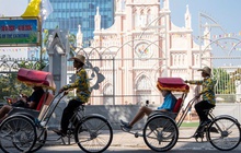 Tài xế xích lô chở khách trên đường Trần Phú, qua nhà thờ Con Gà - một điểm đến thu hút khách Hàn Quốc