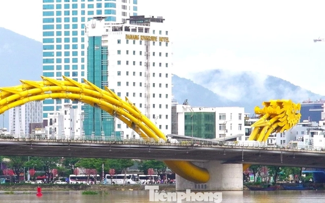 Cầu rồng phun lửa vào cuối tuần thu hút hàng ngàn du khách đến xem. Ảnh: Thanh Hiền.