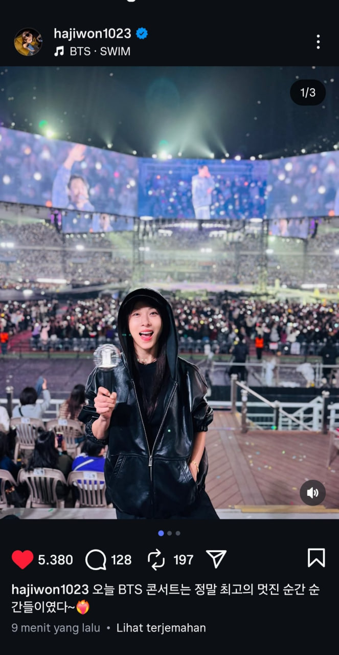 Ngay từ ngày mở màn 9/4, concert đã sớm trở thành chủ đề nóng nhờ sự xuất hiện của Jang Wonyoung (IVE). Bất chấp thời tiết hôm đó xuất hiện mưa lớn, nữ thần tượng vẫn lẻ bóng di chuyển đến khu vực khán đài để theo dõi và cổ vũ các tiền bối. Hình ảnh cô diện trang phục đời thường giản dị, che ô đến sân vận động lập tức thu hút lượng lớn tương tác và thảo luận trên các diễn đàn .