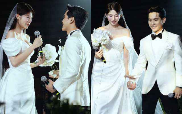 Ngọc Phát nói trong nước mắt: "Anh hứa cùng em chăm lo cho con cái, gia đình, bằng tình yêu, hiểu biết và trách nhiệm. Với anh, hạnh phúc của em là quan trọng nhất, vì khi em mỉm cười, anh biết mình đang sống với những gì đẹp đẽ nhất. Anh hứa sẽ luôn nhìn lại mình trước mọi lời nói, hành động, để yêu em chân thành, không bằng phản ứng mà bằng hiểu và thương. Anh biết hạnh phúc sẽ không tự có, mà phải xây dựng từng ngày, trong từng hơi thở và nỗ lực nhỏ bé của chúng mình, như là: nếu em quên sạc điện thoại trước khi đi ngủ - anh sẽ sạc thay em, những lúc em bận rộn nhiều mà quên ăn - anh sẽ làm đồ ăn cho em. Anh tin, chỉ cần có nhau mình sẽ nuôi lớn được hạnh phúc đó".