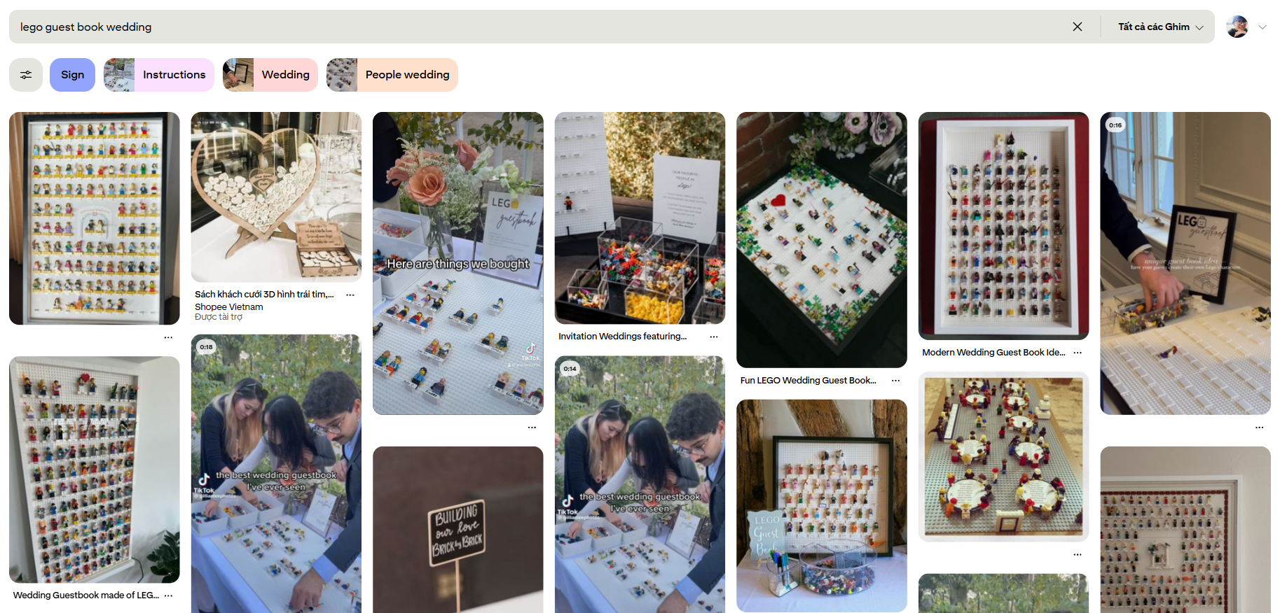 Chỉ cần gõ "Lego guest book wedding" trên Pinterest sẽ nhận được vô vàn kết quả (Ảnh chụp màn hình)