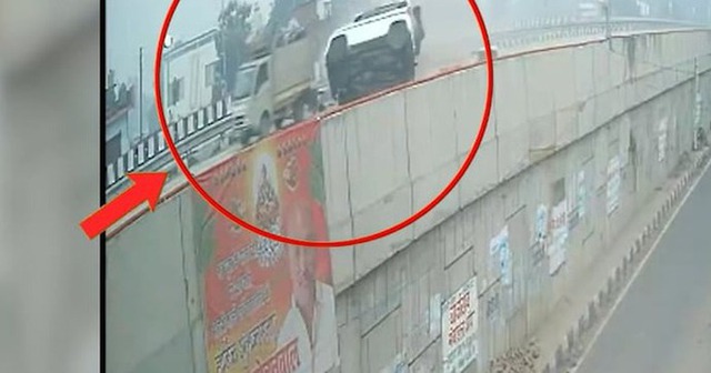 Vụ việc gây sốc đã được camera giám sát ghi lại và đoạn clip cho thấy chính xác thời điểm va chạm xảy ra. Vài giây trước khi xảy ra tai nạn, chiếc ô tô con được nhìn thấy mất lái và đâm vào một chiếc Tata Magic đang chạy phía trước.