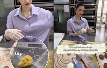 Người đẹp đã chuẩn bị khá cẩn thận và thực hiện từng công đoạn một cách tỉ mẩn: từ chia nhân, cân đo đong đếm tỉ mỉ cho đến nhào bột, nặn bánh, đóng khuôn rồi cho vào lò nướng. Cô thậm chí còn ghi rõ công thức làm bánh để những ai quan tâm có thể tham khảo.