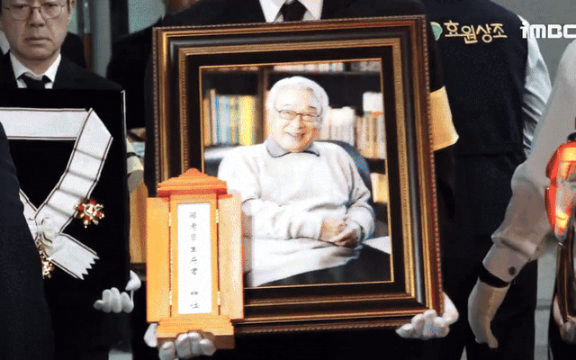 ... Kim Young Chil khóc nghẹn trên bục đọc điếu văn trong ngày đưa tiễn người thầy của mình về nơi an nghỉ