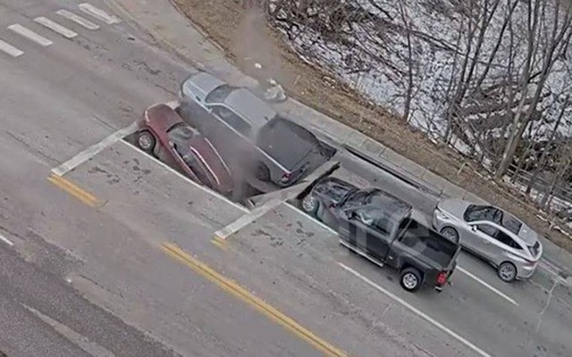 Đoạn clip ghi lại cho thấy hai chiếc xe đang dừng đèn đỏ thì mặt đường bên dưới đột ngột sụp xuống vào chiều ngày 24/2, tại Omaha, Mỹ. Hai chiếc xe địa hình phía sau nhanh chóng lùi lại để tránh bị rơi xuống.
