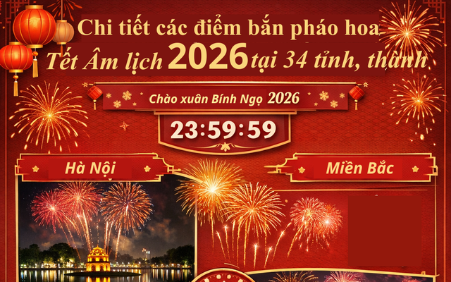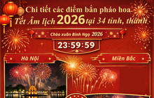 Dưới đây là Địa điểm bắn pháo hoa Tết Âm lịch 2026 của 34 tỉnh thành chi tiết như sau: