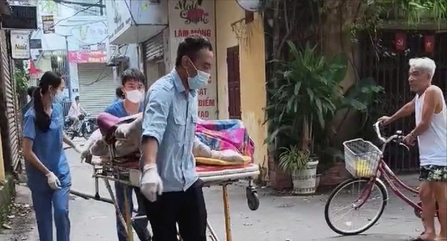 Ngôi nhà cao 4 tầng, ngõ vào nhỏ, xe cứu hỏa không thể tiếp cận gần hiện trường.