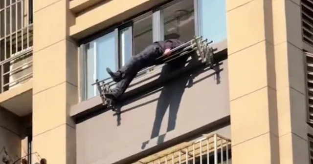 Các nhân chứng cho biết, người đàn ông này đã vô tình ngã từ tầng 15 của một tòa nhà chung cư và sống sót nhờ giá phơi quần áo bên ngoài cửa sổ tầng 7. Ảnh: AsiaWire