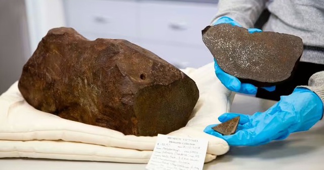 Tảng đá được xác định là thiên thạch có niên đại 4,6 tỷ năm. (Nguồn: Bảo tàng Victoria/Nhiếp ảnh gia: Rodney Start)