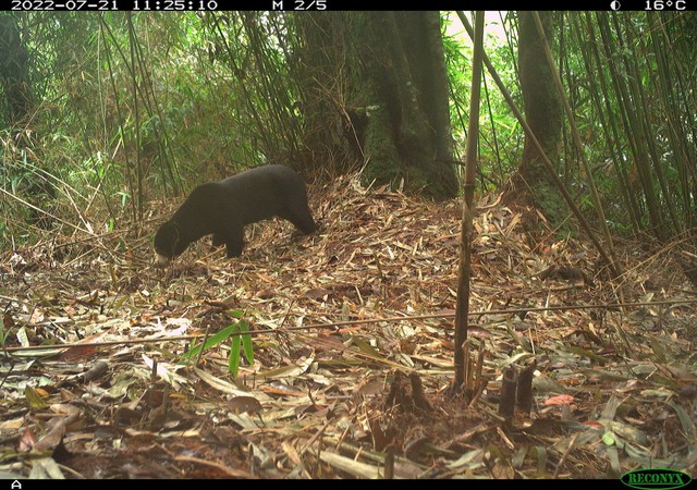Trong hàng trăm nghìn dữ liệu ấy, một đoạn hình đặc biệt khiến nhóm nghiên cứu dừng lại: một loài vật nhỏ, dáng thấp, lông đen mượt, ngực có mảng sáng hình bán nguyệt lặng lẽ băng qua rừng ẩm giữa đêm. Những đặc điểm ấy trùng khớp hoàn toàn với loài gấu chó, loài gấu nhỏ nhất thế giới và được xếp hạng cực kỳ nguy cấp trong Sách đỏ Việt Nam.