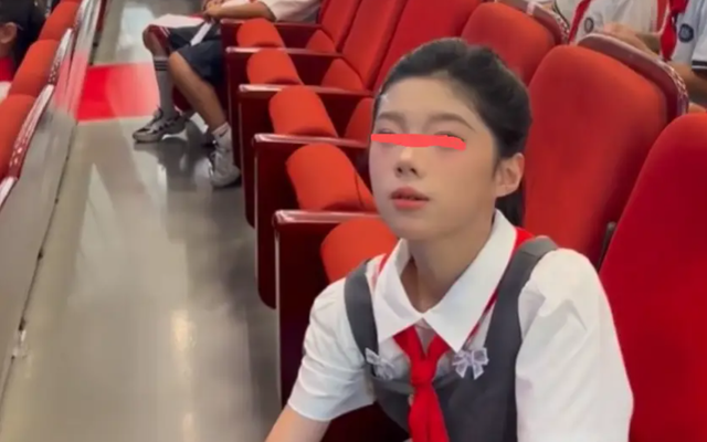 Hình ảnh do chính mẹ bé đăng tải cho thấy hội trường lớn chật kín học sinh các khối. Các em đều đang chuẩn bị cho phần phát biểu: người thì chăm chú luyện đọc, người thì lo lắng ôn lại ghi chú. Giữa không khí nghiêm túc ấy, bé gái với lớp trang điểm lộng lẫy lập tức thu hút sự chú ý vì trông chững chạc như học sinh trung học chứ không phải tiểu học.