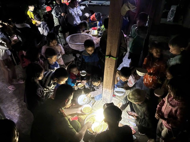 Giữa màn mưa trắng xóa ngoài kia, hơi ấm từ những nồi mì tôm nóng hổi lan tỏa khắp căn phòng nhỏ, xua đi phần nào cái giá lạnh của núi rừng Trà Leng trong đêm lũ. Những khuôn mặt lấm lem vì mưa gió, từ người già, phụ nữ, trẻ em ngồi quây quần bên nhau, tay nâng bát mì bốc khói, ánh mắt ánh lên niềm xúc động và biết ơn. Không ồn ào, không lời than vãn, chỉ có hơi ấm của tình người lan tỏa giữa cơn mưa dữ.