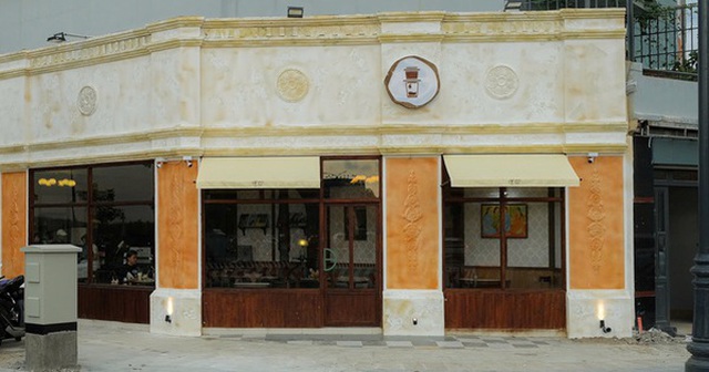 Quán được bài trí tinh tế với nội thất gỗ trầm, sàn gạch bông, khung cửa sổ vòm kiểu Pháp và những bức tường vintage nhuốm màu thời gian. Ánh nắng chiếu qua ô cửa kính, tạo nên những vệt sáng dịu dàng, khiến không gian càng thêm ấm cúng và gần gũi.