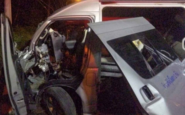 Vụ tai nạn xảy ra trên đường Thepkrasattri thuộc xã Mai Khao, Phuket vào khoảng 4 giờ sáng. Chiếc xe chở khách du lịch đã tông mạnh vào một cột đèn, khiến thanh rào chắn bảo vệ đâm xuyên qua phần đầu xe. Ba người đã bị mắc kẹt bên trong đống đổ nát, trong khi tài xế xe van bị gãy chân và chịu nhiều vết thương khác.
