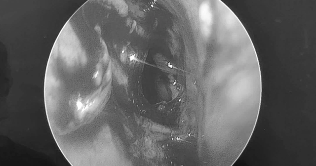 Sau khi thăm khám, bác sĩ Nguyễn Thanh Tiên cùng ê kíp đã tiến hành phẫu thuật mở xoang bướm và lấy sạch bệnh tích, dẫn lưu bằng phương pháp nội soi mũi xoang.