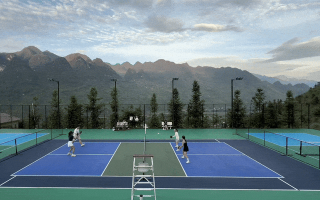 Thực tế, những thước phim này được ghi lại tại sân pickleball ngoài trời của H’Mông Village Resort, khu nghỉ dưỡng nằm tại xã Đông Hà, huyện Quản Bạ, tỉnh Hà Giang cũ – cách Hà Nội khoảng khoảng 350km. Từ một góc nhìn nhỏ, nơi đây đang dần trở thành điểm đến được yêu thích của du khách trong và ngoài nước, đặc biệt là những ai muốn tìm một chốn nghỉ dưỡng đúng nghĩa giữa thiên nhiên hùng vĩ.