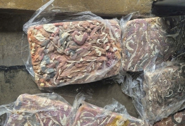 Số lượng lớn lòng cấp đông, chuyển màu chờ tuồn ra thị trường. (Ảnh: CAHN)