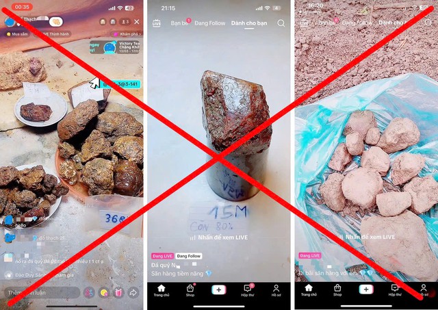 Trong các buổi livestream, các đối tượng đưa ra thông tin, hình ảnh sai sự thật, khiến người xem tin rằng việc “đổ thạch” có thể tìm được đá quý có giá trị cao và sẽ được các đối tượng thu mua lại với giá hấp dẫn.