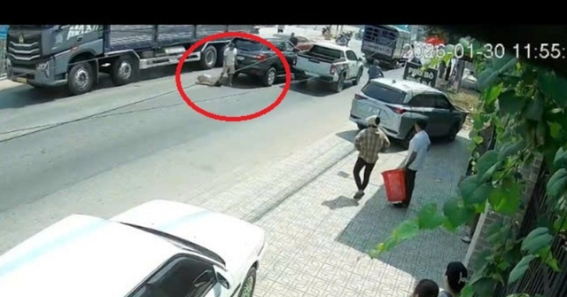 Theo camera an ninh do người dân ghi lại, ô tô 7 chỗ và xe bán tải lưu thông cùng chiều trên ĐT825. Khi đến gần đèn tín hiệu giao thông cầu Ba Sa, hai xe dừng áp sát nhau.