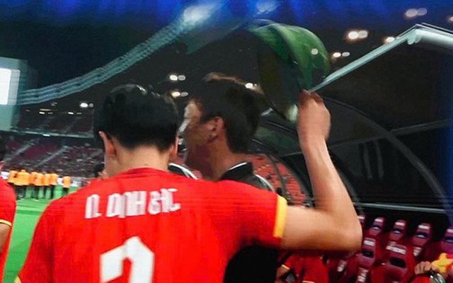 Đây là hình ảnh diễn ra ngay sau khi đội tuyển U23 Việt Nam đánh bại chủ nhà Thái Lan với tỷ số 3-2 trong trận chung kết SEA Games 33 vào tháng 12/2025. Chiếc mũ cối là biểu tượng giản dị nhưng đầy ý nghĩa của người Việt được Đình Bắc mượn từ một cổ động viên trên khán đài để đội lên đầu vị chiến lược gia người Hàn Quốc.
