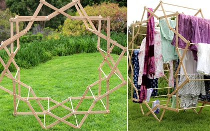 Bạn sẽ ngạc nhiên khi thấy cây phơi đồ có hình dáng chiếc bánh xe lại có thể gấp xếp dễ dàng đấy!