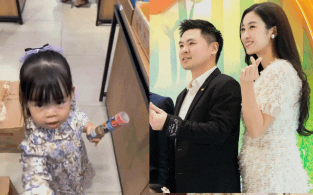 Con gái Đỗ Mỹ Linh nắm tay bố Chủ tịch đi tiệm sách, 2 tuổi lanh lợi thế này bảo sao nàng hậu yên tâm mang bầu lần 2.