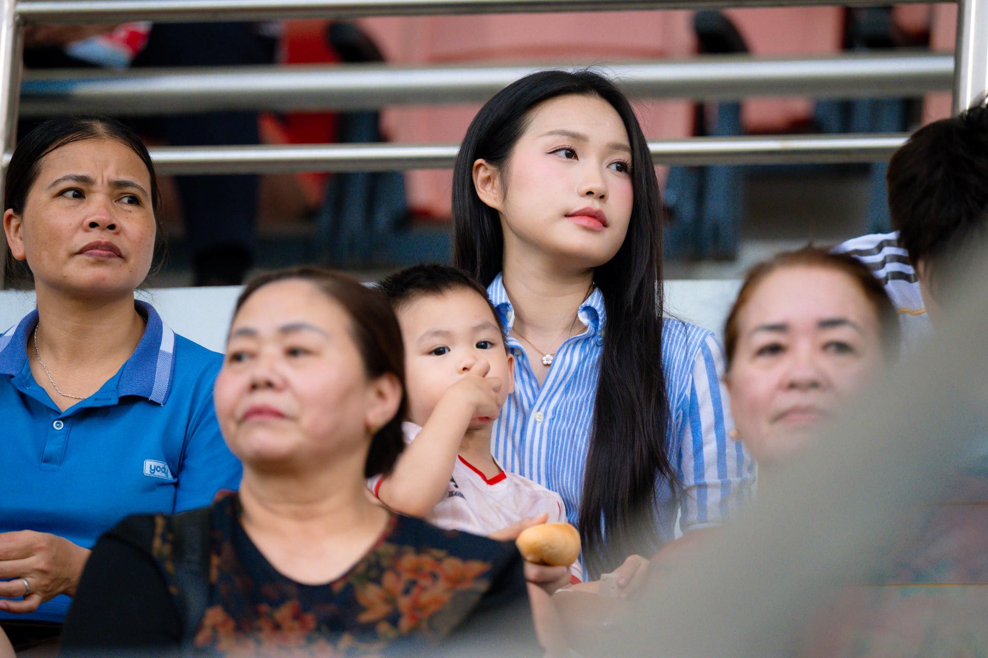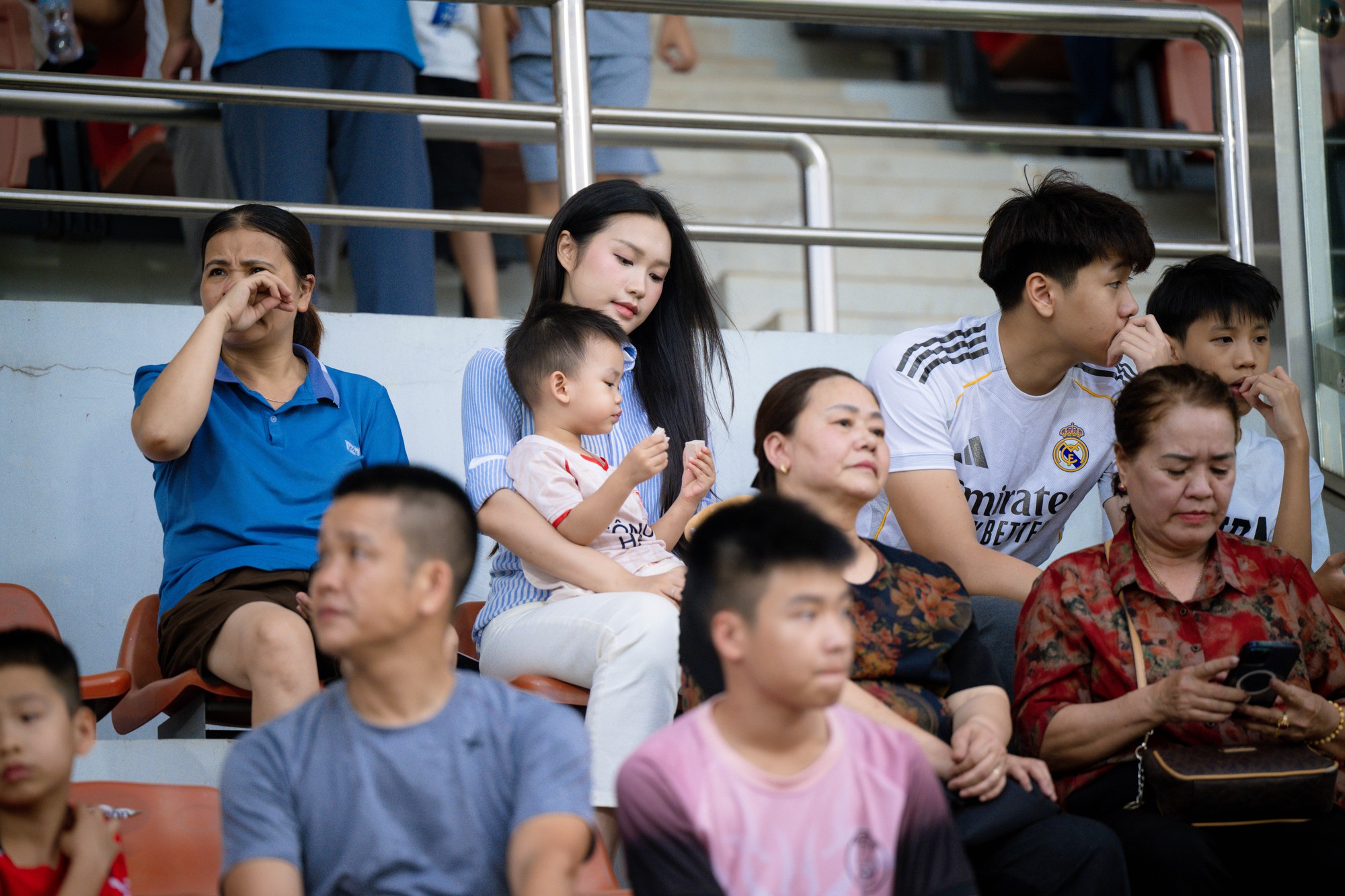 Văn Hậu bế con trai cùng đi xem