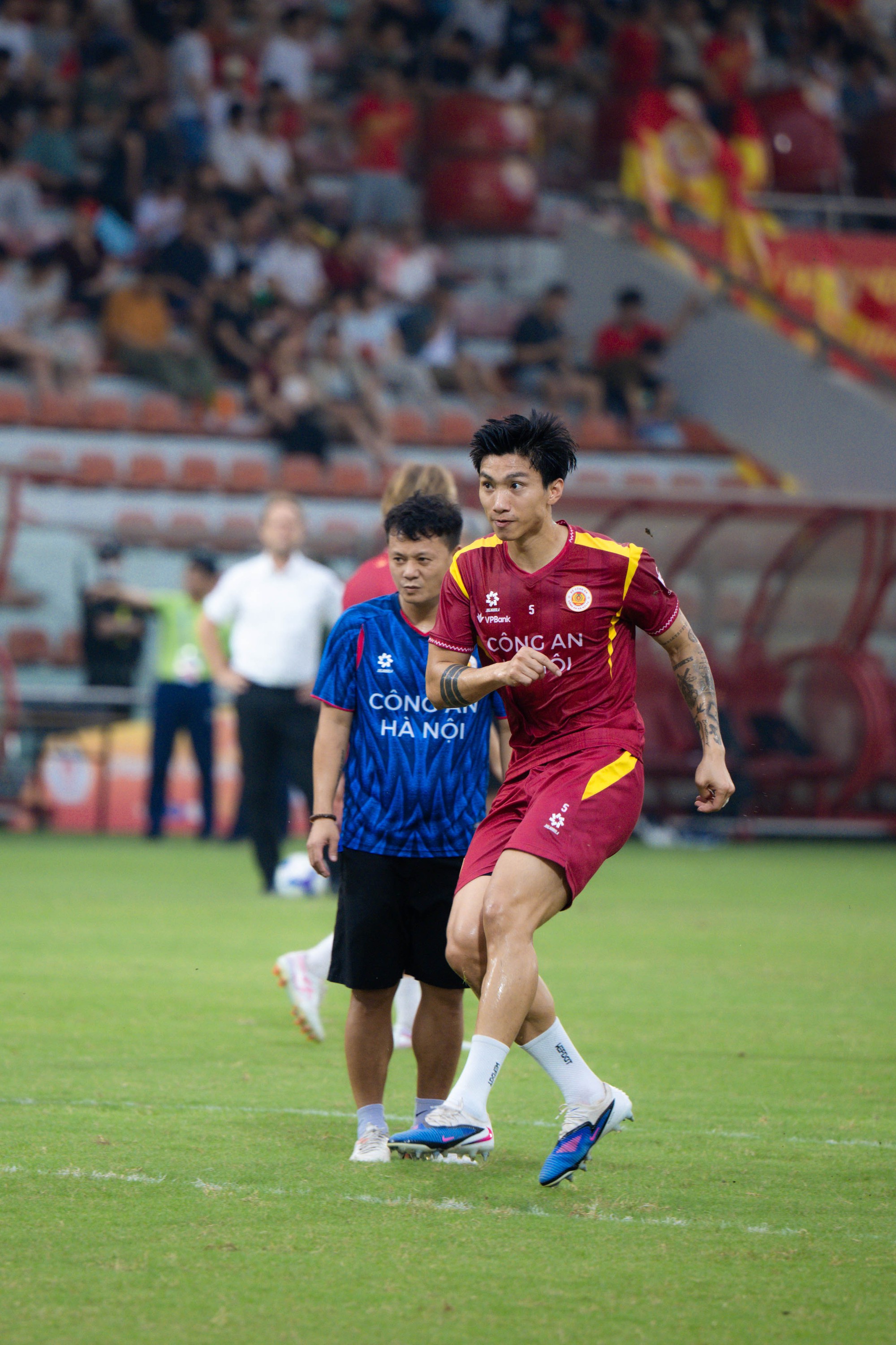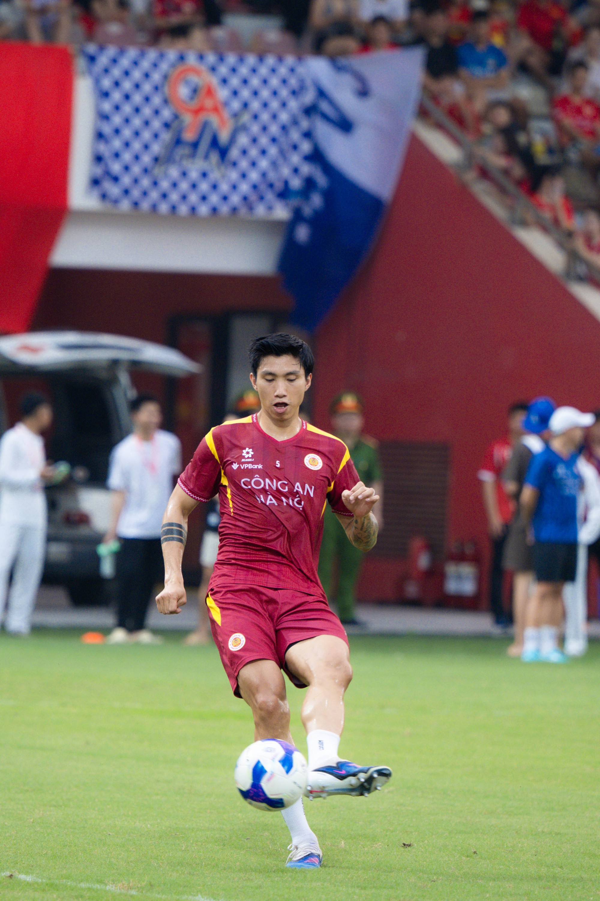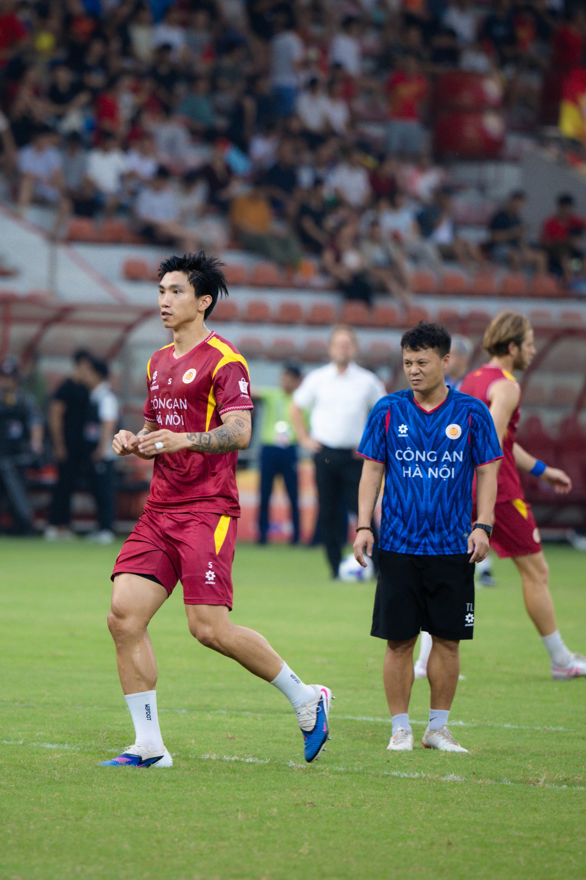 Văn Hậu bước vào khởi động trước trận đấu