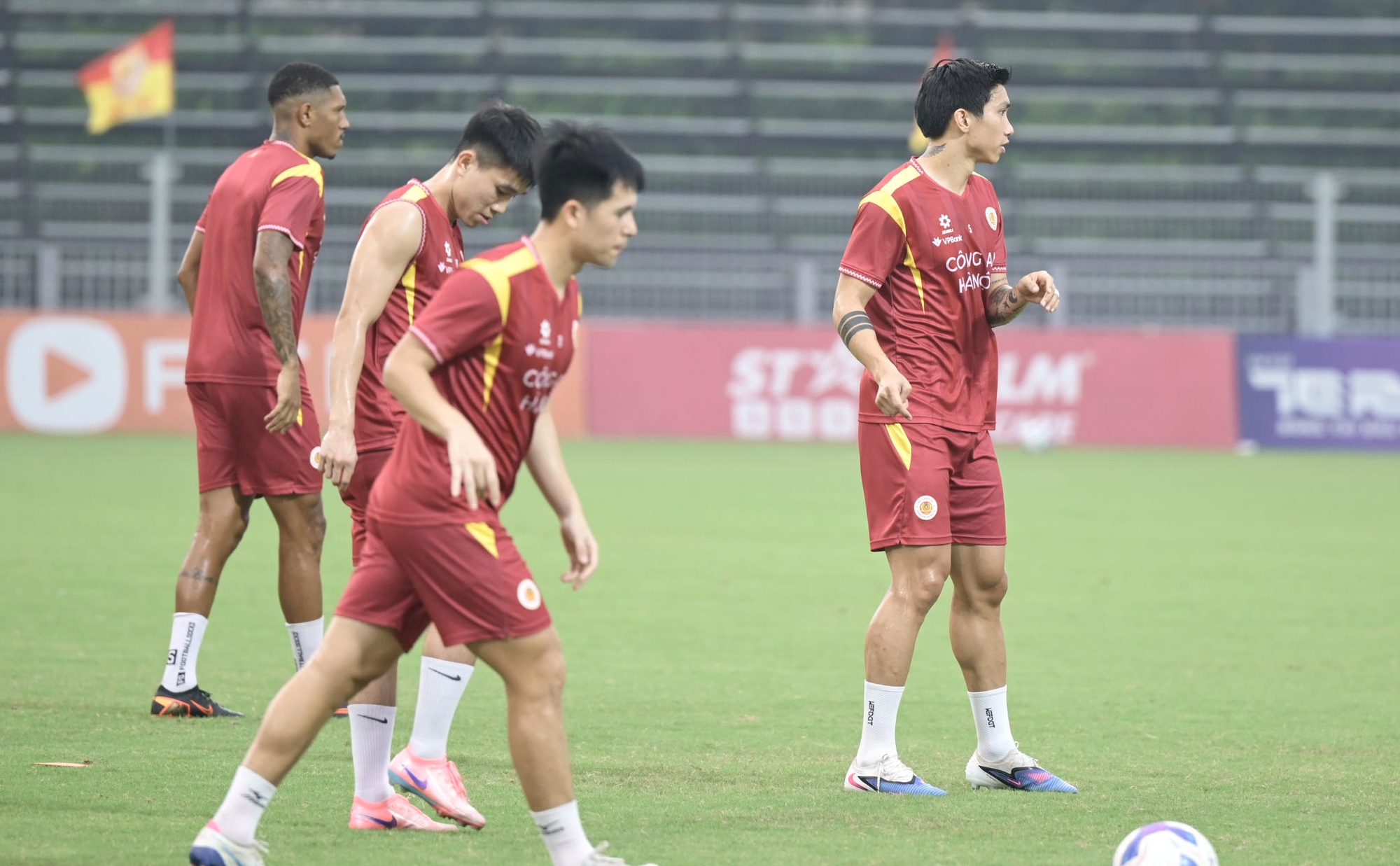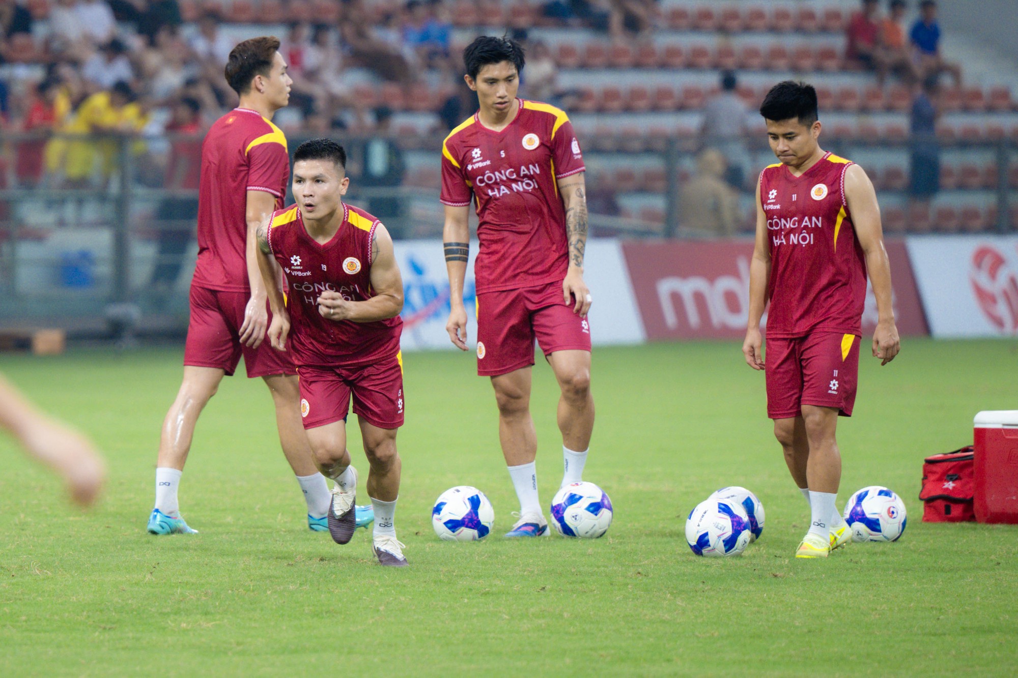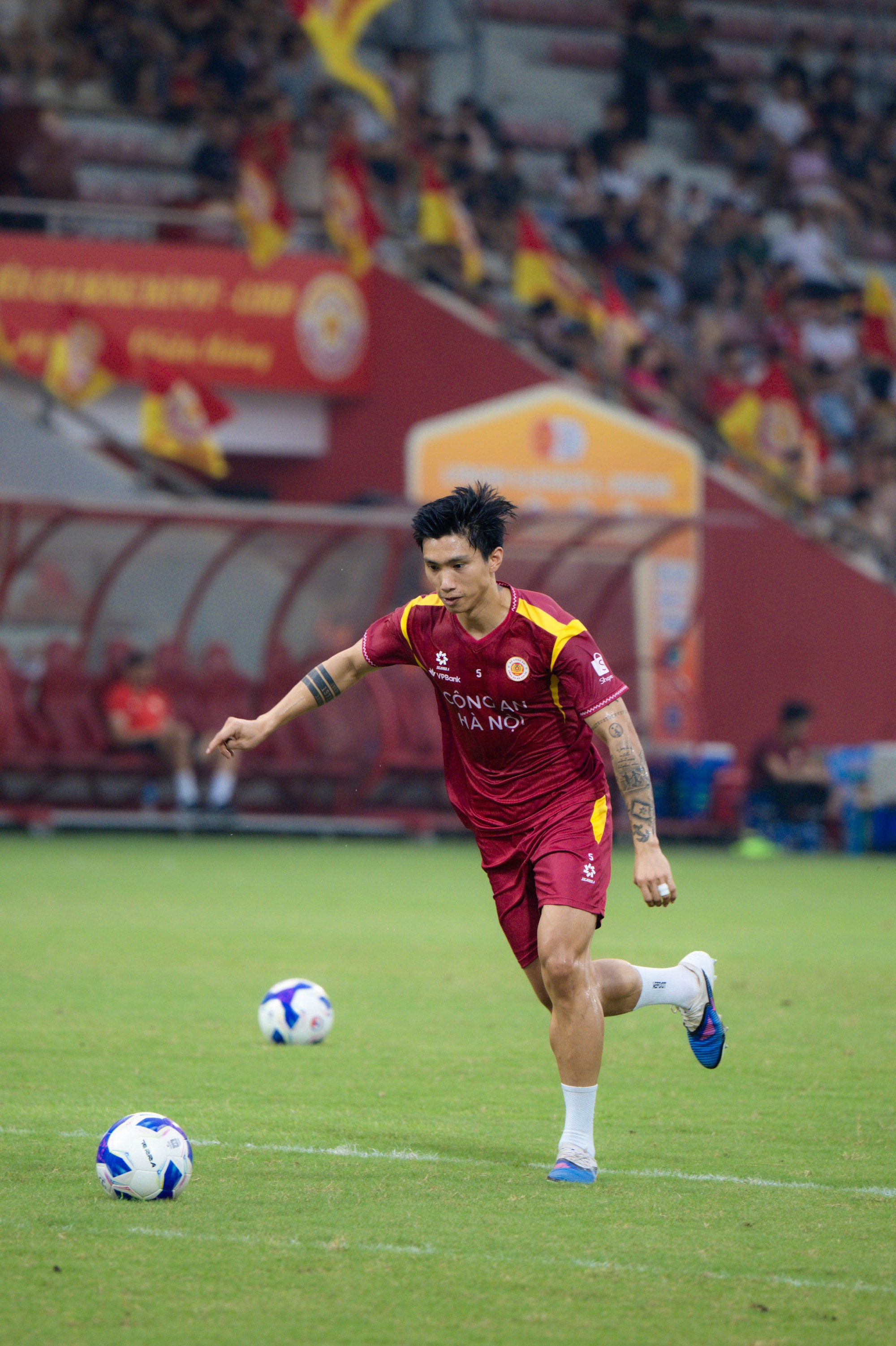 Văn Hậu bước vào khởi động trước trận đấu