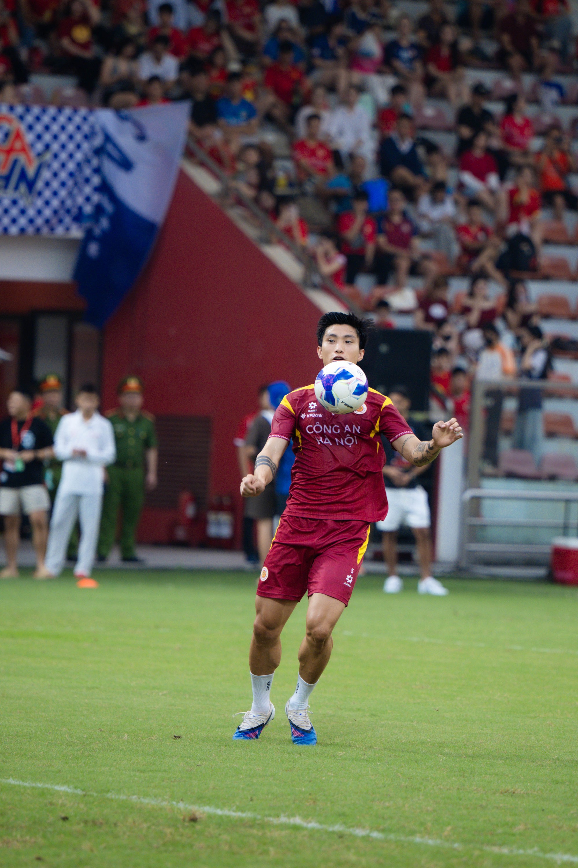 Doãn Hải My kể từ khi cưới Văn Hậu năm 2003 đến nay thường xuyên theo chân chồng mỗi trận đấu. Cô nàng cũng dần đam mê bóng đá khi có chồng là cầu thủ. Ở trận đấu này, Văn Hậu được HLV Polking xếp đá chính. Đội bóng của hậu vệ sinh năm 1999 đang xếp đầu bảng xếp hạng V.League nên đây được xem là trận đấu quan trọng để CAHN củng cố ngôi đầu bảng cho cuộc đua vô địch V.League.