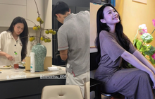 Đặc biệt, sau khi tiệc tàn, Doãn Hải My lại ghi điểm tuyệt đối khi tự tay dọn dẹp, rửa chén bát trong bếp. Hình ảnh cô nàng diện bộ đồ ngủ giản dị, tóc buộc gọn gàng, vừa trò chuyện vừa làm việc nhà khiến cộng đồng mạng thích thú. Từ Top 10 Hoa hậu Việt Nam 2020 đình đám với vẻ ngoài sang chảnh, Doãn Hải My ở đời thường lại toát lên sự đảm đang, khéo léo, biết vun vén gia đình.