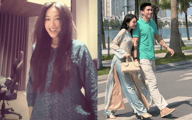 Bà xã Văn Hậu hoá tiểu thư Hà thành nền nã trong tà áo dài Tết