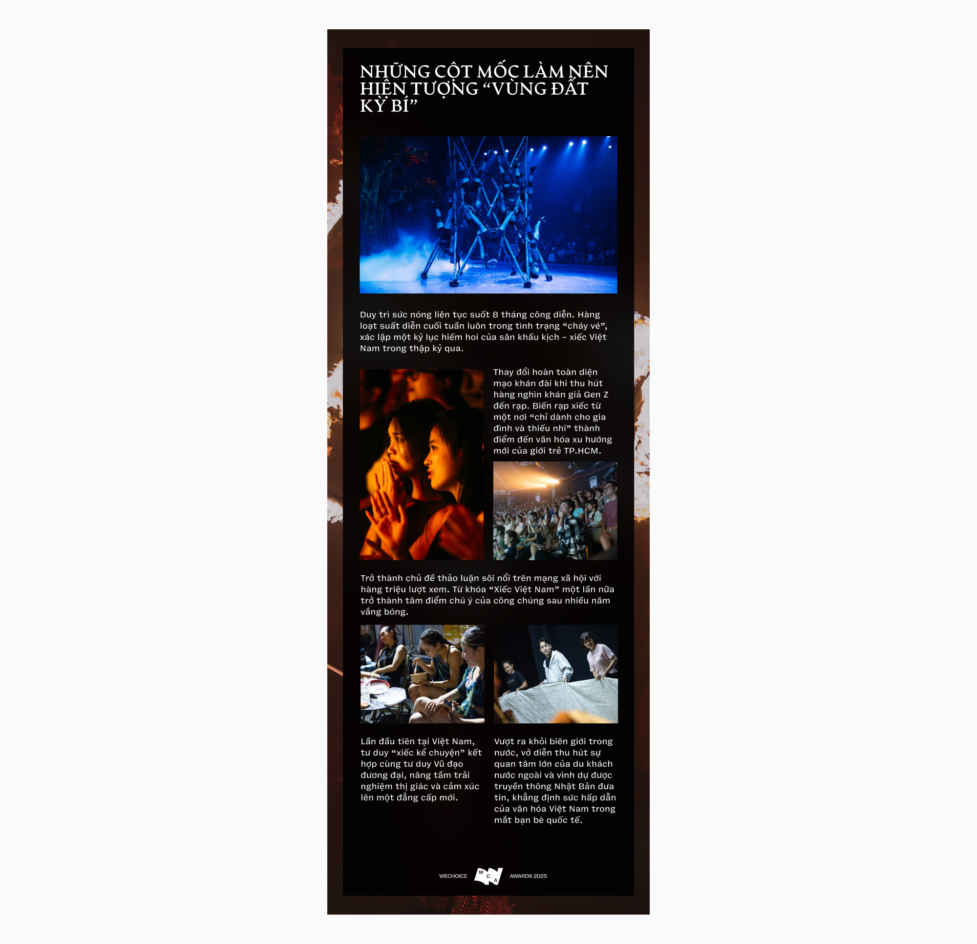 Hành trình kể chuyện Việt Nam vẫn đang chảy trôi không ngừng nghỉ dưới mái vòm ấy. Với biên đạo Mạnh Quyền thì vinh quang chưa bao giờ là gánh nặng. Áp lực duy nhất của anh là làm sao để bản thân tốt hơn ngày hôm qua và làm sao để văn hóa truyền thống thực sự chạm được vào trái tim của người trẻ. Việc khán giả sẵn sàng chờ đợi cả tháng trời để cầm trên tay tấm vé xem show chính là câu trả lời ngọt ngào nhất cho những nỗ lực không mệt mỏi ấy.