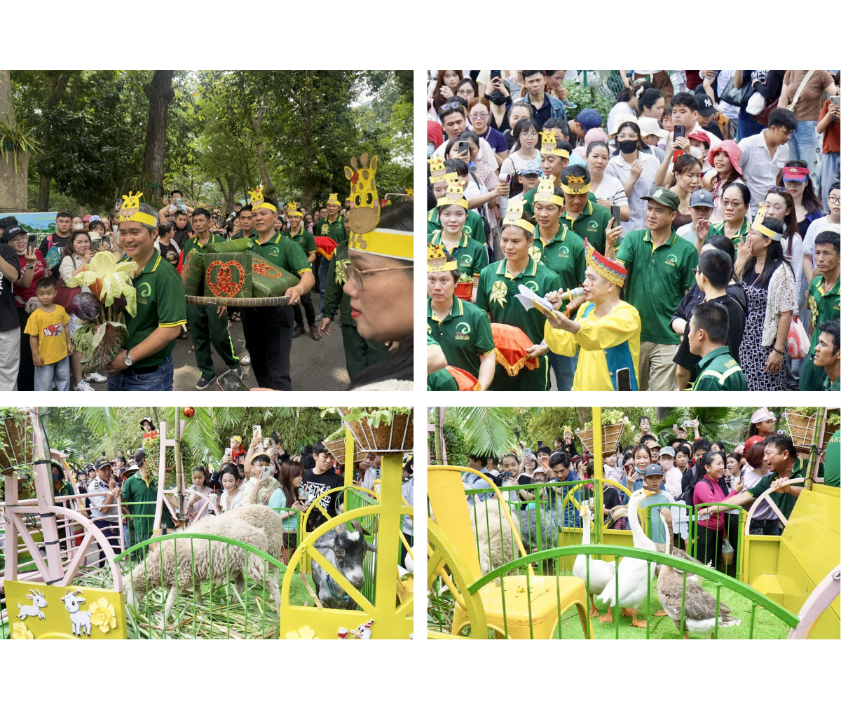 Bên trong khuôn viên, dòng người đổ về khu vực sự kiện đông đúc đến mức gần như không còn một chỗ trống, lối đi dọc các khu vực chuồng thú kẹt cứng. Đủ mọi lứa tuổi, từ các gia đình dắt theo con nhỏ đến những nhóm bạn trẻ, ai nấy đều hừng hực khí thế, bất chấp cái nóng oi ả của ngày lễ để xí cho mình một vị trí đẹp nhất.