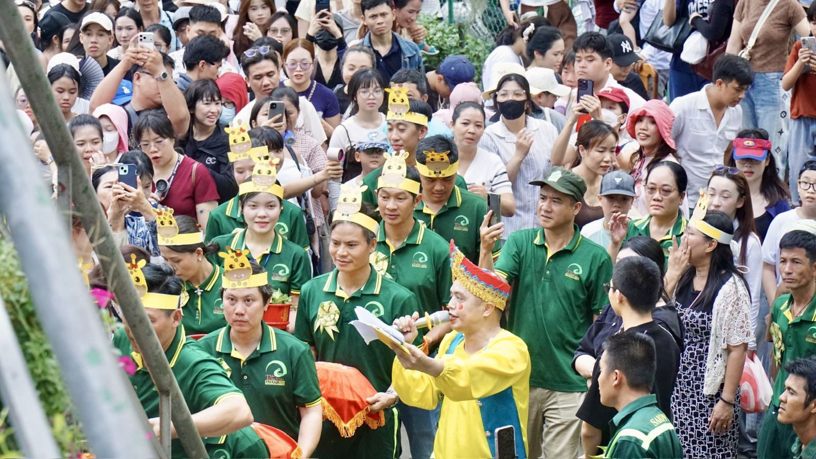Dàn khách mời, đội ngũ bê tráp và sính lễ cực kỳ hoành choáng của cặp vợ chồng mới cưới (Ảnh: Báo Tin tức và Dân tộc, @Như Quỳnh)