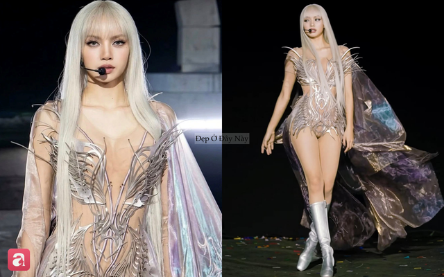 Trong lần xuất hiện này, Lisa gây ấn tượng mạnh với mái tóc vàng óng ả cùng bộ bodysuit ánh kim độc đáo. Thiết kế ôm sát cơ thể, với những đường nét mô phỏng cấu trúc khung xương của một sinh vật kỳ ảo, mang lại cảm giác vừa futuristic vừa có chút siêu thực. Bộ trang phục ngay lập tức trở thành tâm điểm, không chỉ bởi kiểu dáng táo bạo mà còn nhờ cách Lisa thể hiện thần thái - vừa lạnh lùng, vừa cuốn hút, đúng chất một performer làm chủ sân khấu.