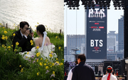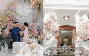 Không chọn sắc đỏ rực rỡ thường thấy trong những rạp cưới, cặp đôi đã mang đến một làn gió mới với tông màu pastel nhẹ nhàng, như đang kể lại câu chuyện tình yêu lãng mạn của hai người.